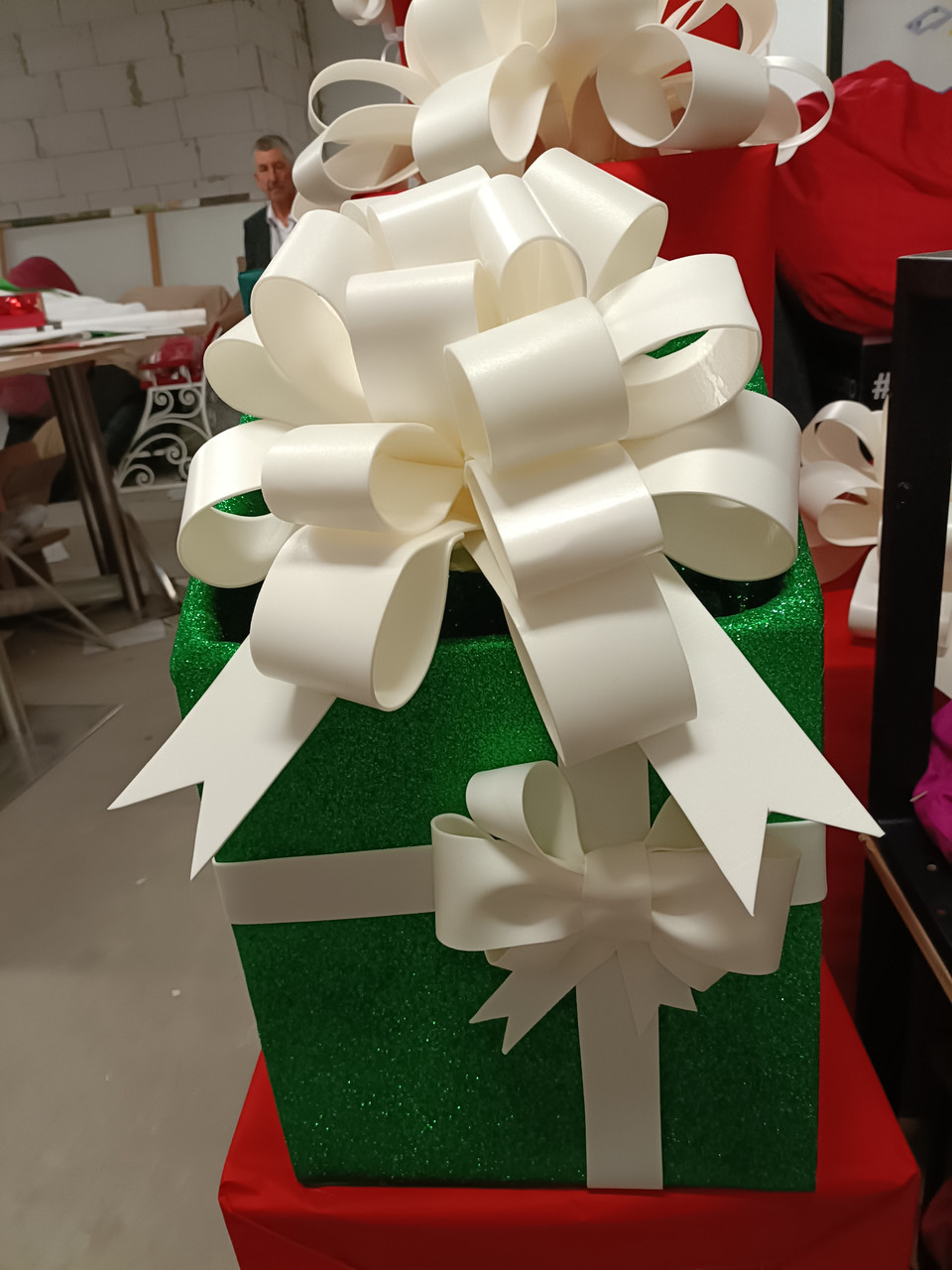 Бант білого кольору, діаметр 60 см, пересилка банта 215 грн. В коробці 2 шт поміщається