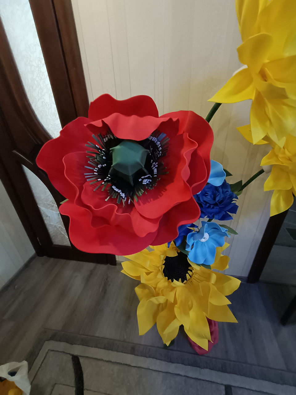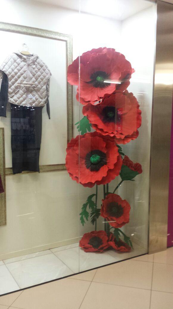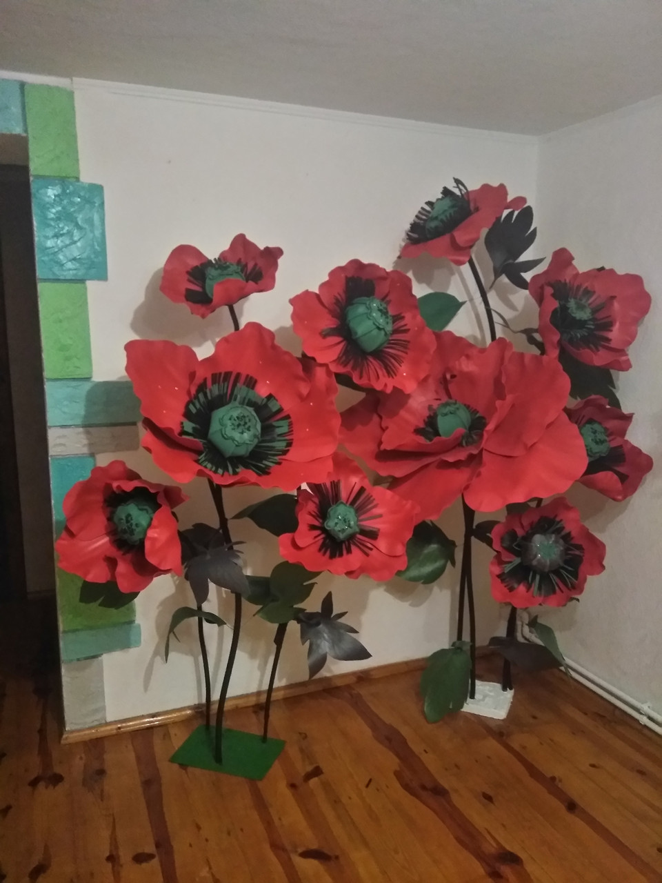 Квіти ростові червоні маки, діаметр 50 см, висота 160 см, ціна за 3 шт.4800грн підставка входить у ціну.