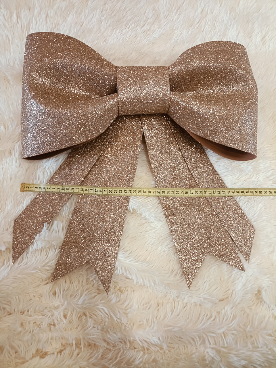 Бант золотий глітерний, розмір 55 см Виготовлений з вологостійкого матеріалу, можна використовувати на вулиці, дуже якісний матеріал, блиск не обсипається.
