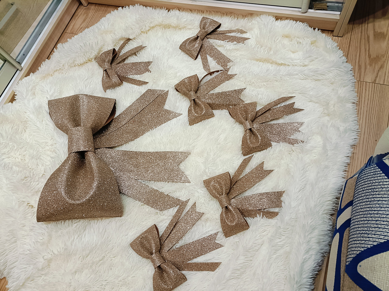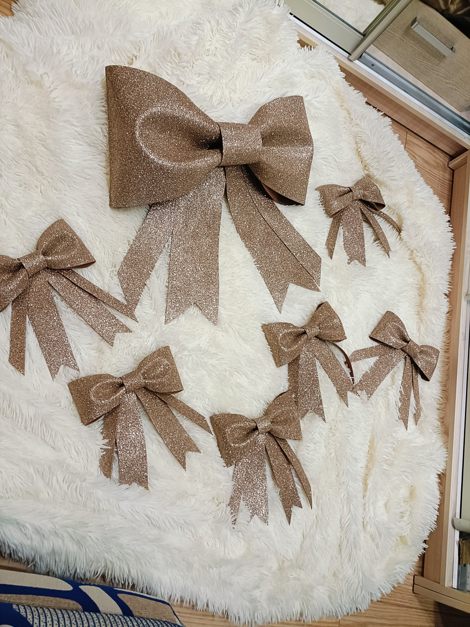 Бант золотий, розмір 20 см, виготовлений з вологостійкого якісного матеріалу, блиск не обсипається. Є ще інші розміри від 20 см до 160 см.