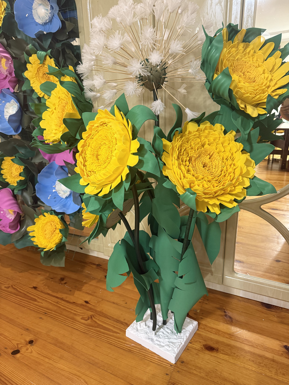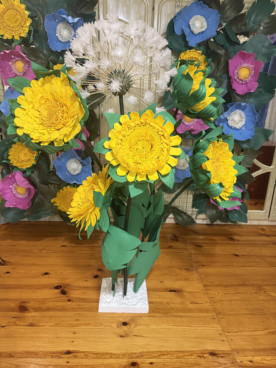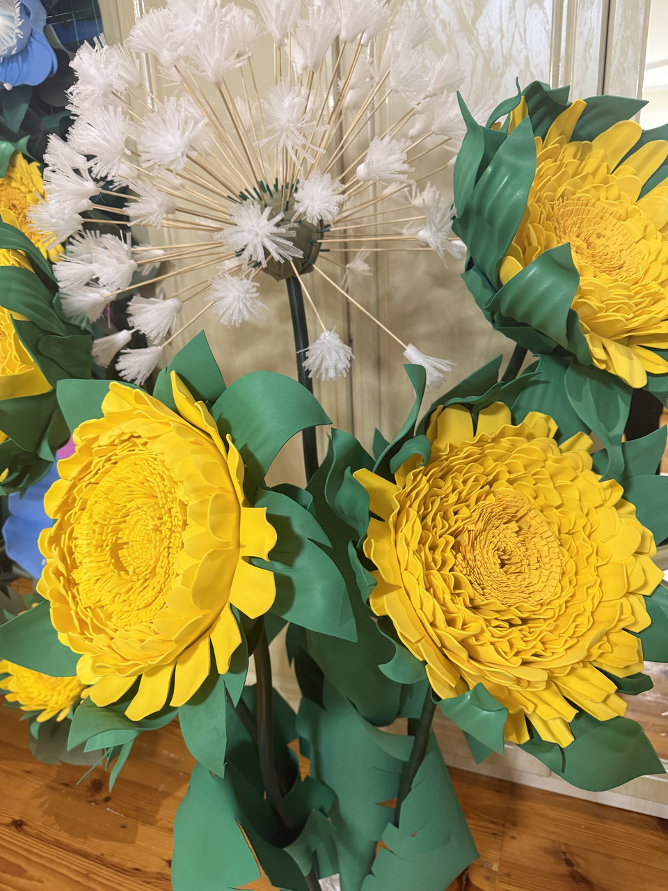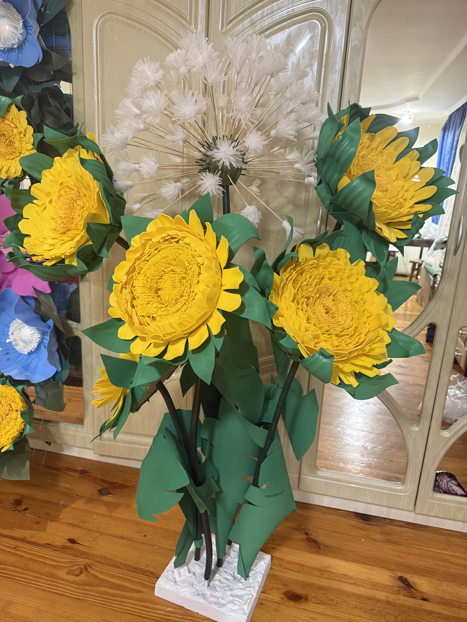 Квіти кульбаби Квіти кульбаби Ростові висота 170 сантиметрів діаметр квітки 50 сантиметрів все разом з підставкою виготовлені з вологостійкого матеріалу- фоамирану
